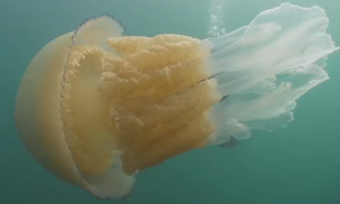 [环球网报道 见习记者 温家越]你可能见过水母,但你见过如下图一般,和人体型一样大的水母吗?