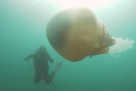 原标题:和人一样大!英潜水员发现巨型桶水母