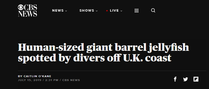 戴利也在接受CBS采访时说:大家都知道会有这么大的(桶水母),但我从来没见过这么大的。丹(摄影师)说,他也没见过这么大的。