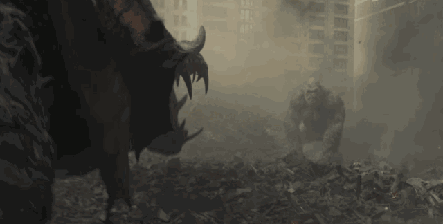 话题有点扯远啦。其实论长相,巨猿并不像猿人,而更像大猩猩,它们平日里都是四条腿走路,而非双足站立行走肢行走的。与大猩猩一样,巨猿也是以植物为食,所以它们要比看上去要害羞温顺得多。温顺并不代表好欺负,巨猿是群居动物,力大无穷的成年雄性负责群体的安全保卫工作,当遇到危险的时候会立刻挺身而出。其实巨猿生活的世界中最危险的食肉动物就是华南虎了,不过华南虎根本就不是成年巨猿的对手!巨猿曾经与国宝大熊猫生活在一起,不过它们最终在距今10万年前灭绝了。