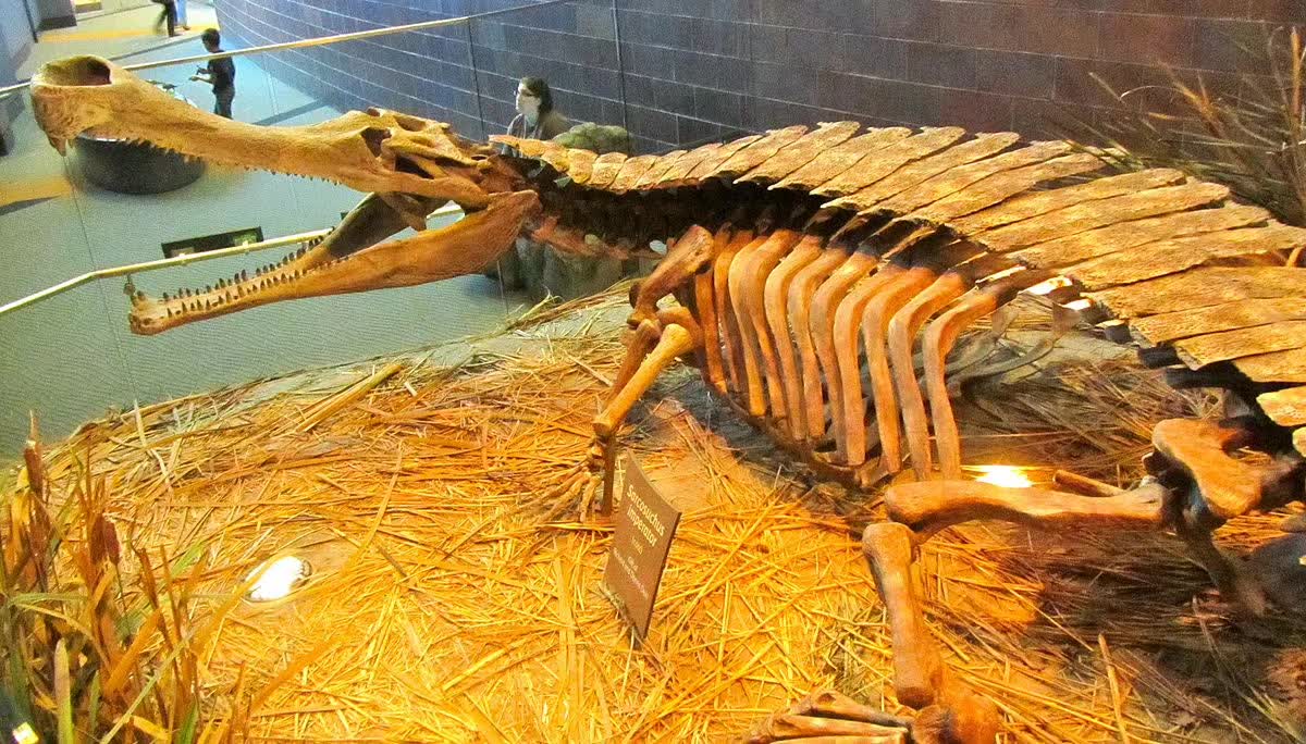 △ 博物馆中的帝鳄化石,其口鼻部很长