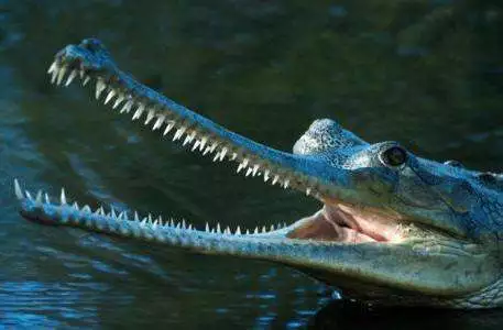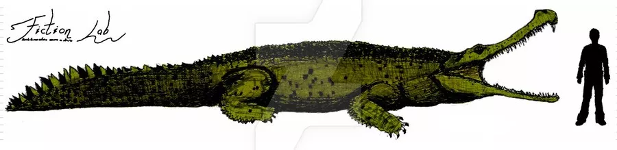 帝鳄的长相与我们印象里的鳄鱼不太一样,它的嘴巴细长,嘴巴前端有个圆鼓的鼻子,跟今天生活在印度的恒河鳄有点相似。在帝鳄的长嘴巴中密密麻麻地长着70多颗尖长的牙齿,每一颗牙都像一枚粗钉子一样,穿透厚厚的皮肉都是小意思。帝鳄的身体宽大,背部和尾部长着骨质的鳞片,可以起到防御作用,这点倒是和今天的鳄鱼一样。