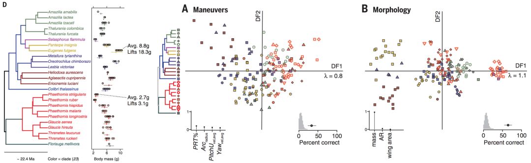 蜂鸟的亲缘关系与其身体重量、形态特征,以及运动过程中的机动性之间的关联性。