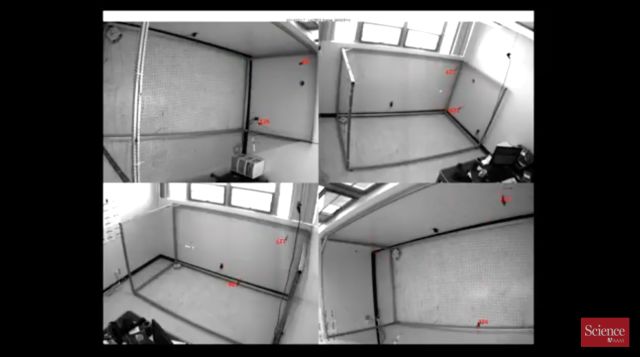 两个月之后,塞格雷和他的团队爬上了秘鲁的高山,深入丛林中找到了一个完美的研究地点(参见往期推文中的纪录片)。他们在此建立了营地,搭建了一个巨大的笼子,配备了太阳能摄像机系统,紧接着开始一个接一个地测试不同的蜂鸟个体(如下图)。研究人员对每只鸟进行了大约30分钟的拍摄,它们在不同的栖息位置间来回穿梭,并在笼子内的各种花朵前觅食。之后他们放走这只鸟让下一只鸟重复这样的测试。塞格雷和他的团队在另外三个地方设立了监测站,包括:厄瓜多尔的安第斯山脉,以及哥斯达黎加的高海拔和低海拔营地。