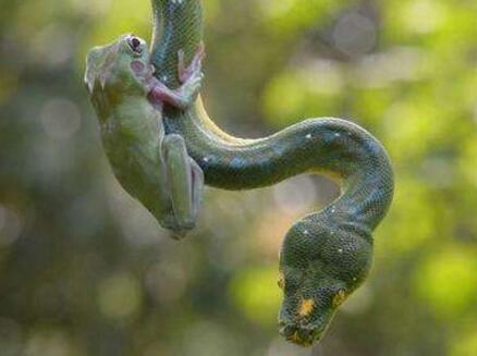 翡翠树蟒圣湖在南美洲热带雨林里,它们喜欢栖息在大树上,这种蛇的样色跟祖母绿翡翠差不多,翠绿翠绿的很是赏心悦目。因为颜色鲜艳,所以比较引人瞩目。其实,它们幼年时大多是好红色或橙黄色,此后会慢慢变成翠绿色,虽然看着漂亮,其实它们的牙比毒蛇还要大,所以千万别被它们漂亮的外表迷惑了,一旦被咬上一口,妈呀,想想都恐怖。