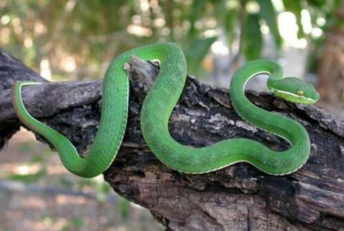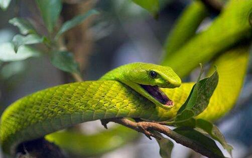 产于非洲的绿曼巴蛇通身都是翠绿翠绿的,如同一块盛世美玉一般唯美漂亮。除了长得漂亮之外,它还有一个特点,就是爬行速度超快,每小时能爬11公里。一旦爬起来,大部分人是追不上的。