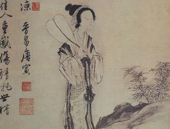 沈九娘是苏州名妓,端庄文雅,才艺过人,琴棋书画样样精通。她看到昔日人人羡慕的唐解元,如今是这样的颓废潦倒,内心的柔情被激发了起来。她照顾他,安慰他,使他走出了人生的低谷。亲友们劝唐伯虎再次续弦,但他心中已经有了沈九娘的影子,再也容不下别人了。这年中秋,他去看望九娘,看到了九娘的一把团扇,就在上面题了一首诗: