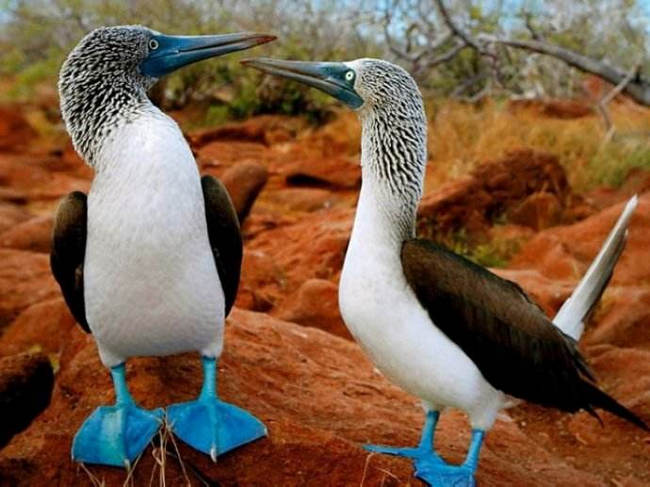 这种看起来呆头呆脑的萌系小鸟生活在太平洋上的一个小岛上,这里有很多动植物都是世界上独一无二的,别处没有的存在。在这座叫做加拉帕戈斯群岛的岛上,它物种繁多,还深深吸引了达尔文,进而引发了他对物种真实起源的思考。这种鸟的雄性脚是漂亮的浅蓝色,越蓝就越能吸引雌鸟。它在求爱的时候还会跳起炫耀自己的蓝色脚掌的舞蹈,模样想必十分可爱了。