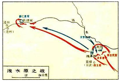 接下来,李世民派出小部分唐军,进驻浅水原,引诱薛仁杲出战。薛仁杲见到唐军出城之后,当即派大将宗罗睺,带上大量陇西精锐,前往浅水原围攻唐军。然而战斗开始之后,唐军依仗地利,硬是挡住了宗罗睺好几日的连续进攻。