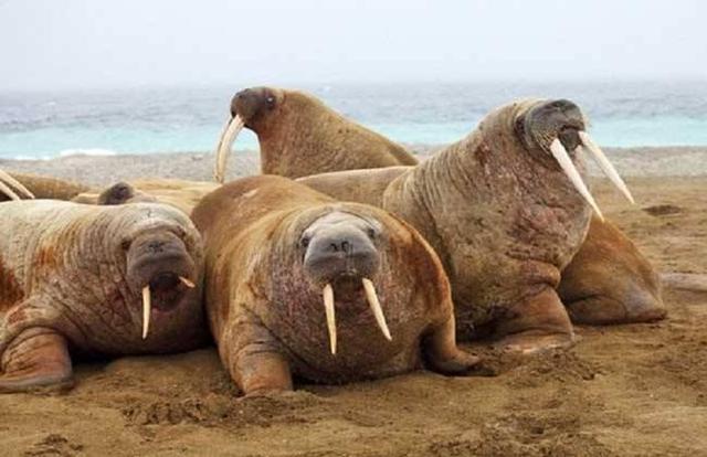 雄海象通过大声发声来吸引雌海象的注意,包括水下钟声似的声音、滴答声和脉波声,还有水面上的嗑牙声和口哨声。在这种一夫多妻社会里,雄性保护大量成群的妻妾,与它一起在水下享受天伦之乐。为保持这一个传统,雄性海鲜会通过争斗称为一方首领,而成为首领者,群中的雌性海象将都是首领的交配对象。