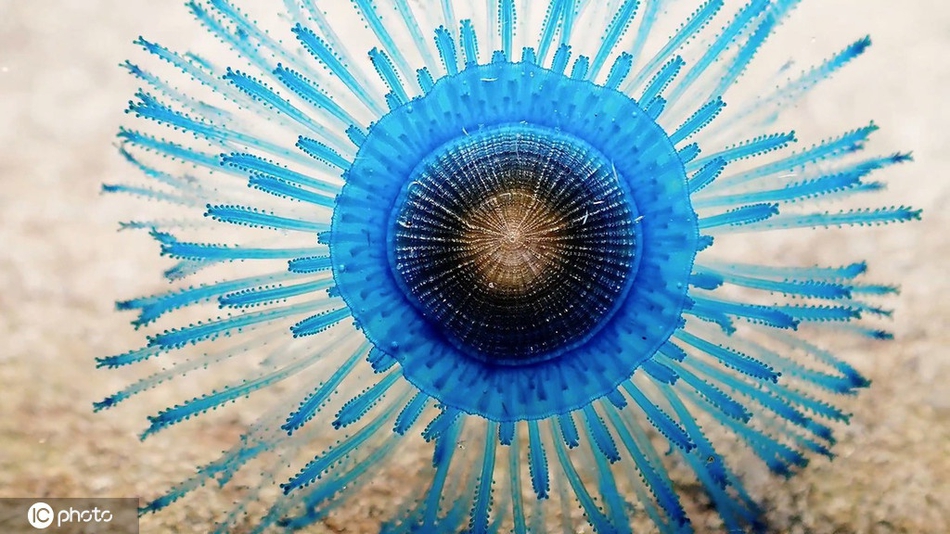 2026-03-28海洋生物学家劳伦斯-舍勒(Lawrence Scheele)在澳大利亚昆士兰彩虹海滩的一个潮池中偶然发现了它,porpita porpita,它..
