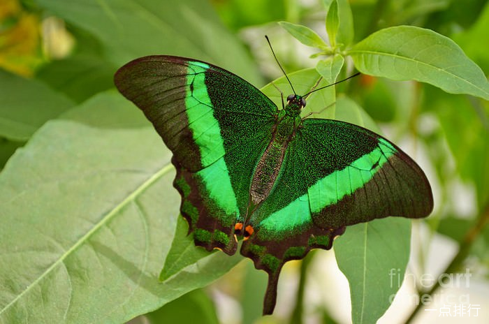 这种蝴蝶是燕尾蝶大家庭的一员,在全世界有550种不同的蝴蝶。翠绿色的燕尾蝶是世界上最大、最鲜艳的蝴蝶之一。它们通常生活在东南亚,翅膀上有闪亮的绿色条纹。它们翅膀的结构颜色也有黄色和蓝色的反射,这些蝴蝶的下部是橙色和黑色。如果你注意到它们翅膀的下面,你也会看到许多蓝色的点朝向边缘。