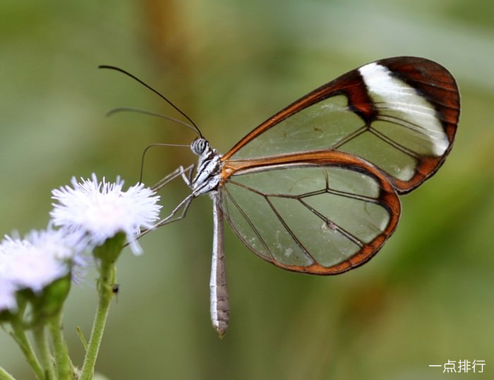顾名思义,这种蝴蝶有着美丽的透明翅膀。这种蝴蝶也叫格雷塔欧托特,分布在哥伦比亚和墨西哥。由于它们透明的翅膀,像爬行动物和鸟类这样的掠食者很难捕捉到它们。这主要是因为它们红褐色的边界,所以它们在某种程度上是可见的,但这并不容易。这些蝴蝶主要以兰塔纳花为食。