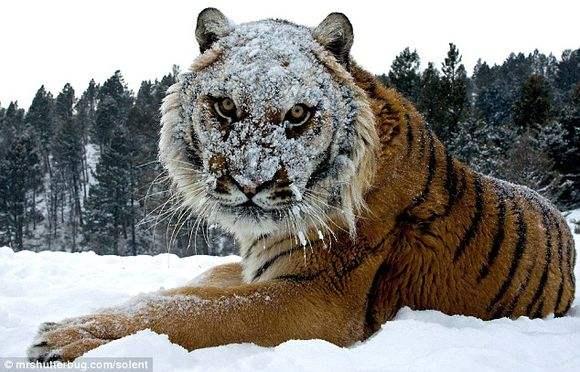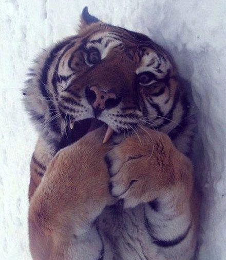 4.不知道被这样一只大老虎舔一下是什么感觉,据说老虎的舌头上有倒刺,舔一下能把皮肉舔出血来不过,这只老虎可不想那么多,因为此时此刻它的内心是一只小猫咪。