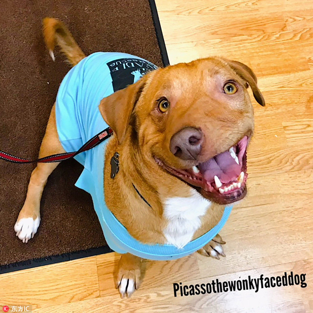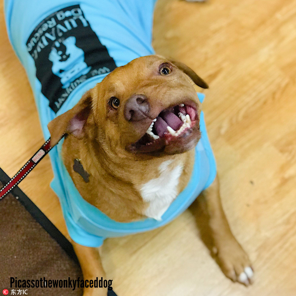 由于天生面部扭曲变形,Picasso被先前的主人遗弃在路边,幸亏遇到了现在的主人Liesl Wilhardt ,Liesl是当地一家救援机构的创始人,当她第一眼看到Picasso时,就喜欢上了这个面貌特殊的狗狗。