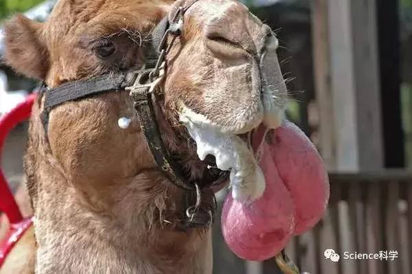 骆驼嘴巴里的囊袋。如果你是一头雌骆驼,那从雄骆驼嘴里挤压出来的一个巨大的、可膨胀的囊袋(称为dulla)就会显得十分性感。女士们很少会有兴趣去看男友的柔软上颚,但如果你是一头雌骆驼,那从雄骆驼嘴里挤压出来的一个巨大的、可膨胀的囊袋(称为dulla)就会显得十分性感。这不仅仅是因为骆驼生活在沙漠中。雄性单峰驼会膨胀嘴巴里的囊袋,使其从嘴巴侧边伸出,就像一个粉红色的肉气球,而这显然会让雌骆驼感到兴奋。它们有时还会用膨胀的囊袋来显示自己的雄性气概,以此在求偶中获得优势。