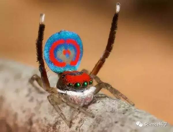 孔雀蜘蛛的开屏表演。在求偶时,雄性孔雀蜘蛛会用后腿反复遮掩腹部,就像孔雀开屏一样。比起前面的几种动物,孔雀蜘蛛的表演就要好看得多。与它们名字里的孔雀一样,这种蜘蛛也有着鲜艳亮丽的腹部。在求偶时,雄性孔雀蜘蛛会用后腿反复遮掩腹部,就像孔雀开屏一样。孔雀蜘蛛是跳蛛的一种,体型娇小,大约只有5毫米。