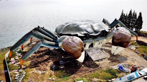 这座大闸蟹建筑整体外形无接缝,采用不锈钢打造,外形霸气凌人(苏州阳澄湖大闸蟹是出了名的,这个想法的确不错,可以说是阳澄湖最标志的建筑了。)