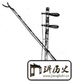 形制与京剧伴奏乐器京胡相同。琴筒竹制,圆筒形,多使用一截两端通透的毛竹筒制作,筒长11.5厘米~12.7厘米、直径6厘米~6.5厘米,筒前口蒙以蛇皮为面,尤以大鳞者为佳,筒后端敞口。琴杆竹制,圆柱体,上粗下细,多使用五节紫竹、白竹制作,全长45厘米~56厘米(图)。顶端为琴头,平顶(正值节隔)无饰。在上端第一、二两个竹节间和第二、三两个竹节间设有两个弦轴,装置方向与琴筒平行。弦轴呈圆锥形,多使用黄杨木或大檀木制作,轴长15厘米~16厘米,轴柄外表刻有直条瓣纹。琴杆中部设有丝弦千斤,下端装入琴筒中并外露系弦。皮面中央置有竹或木制空心琴马。张两条丝弦,使用二弦和老弦。琴弓用细竹两端拴以马尾而成,弓长67厘米~70厘米。
