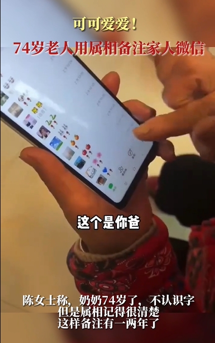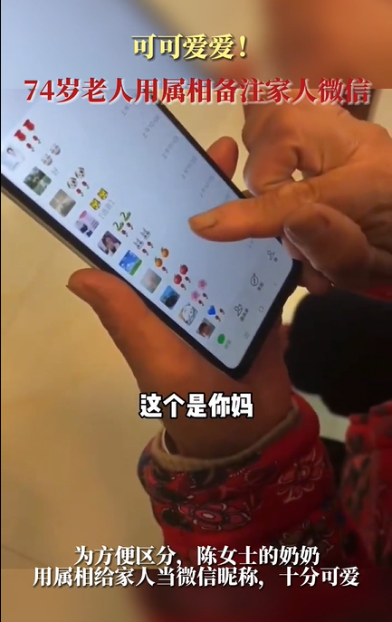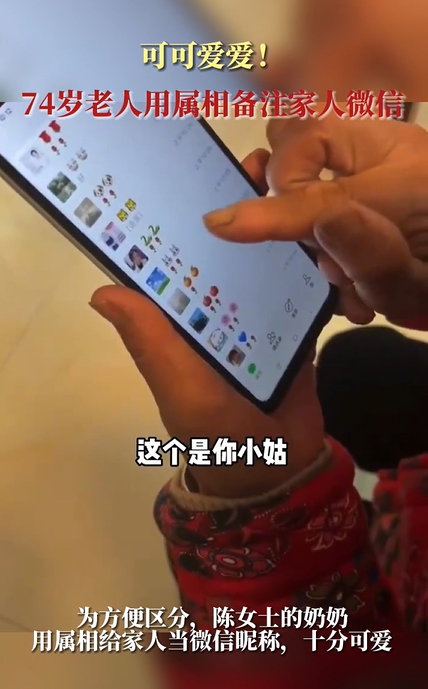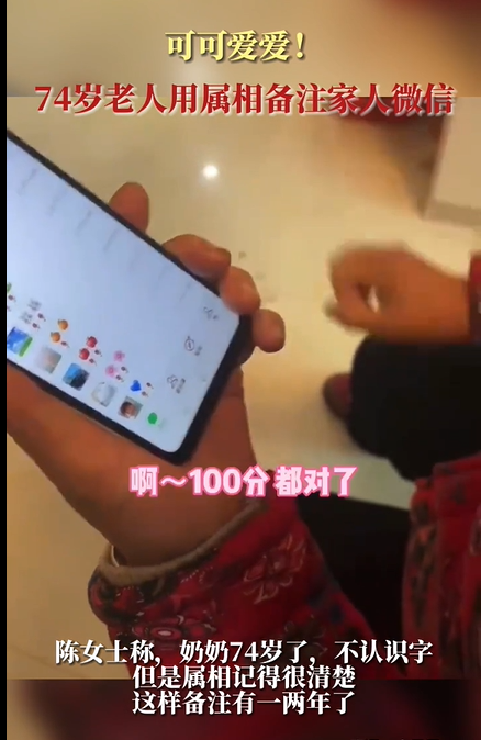 1月21日,河南周口,为方便区分,陈女士的奶奶用属相给家人当微信昵称,十分可爱。陈女士称,奶奶74岁了,不认识字,但是属相记得很清楚,这样备注有一两年了,虽然今年她才换了新手机,还是记得很清楚。