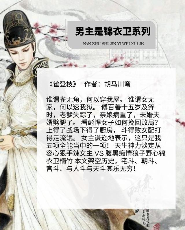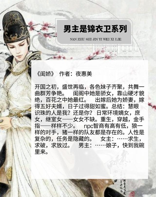 今天小编要推荐给大家的是盘点十本男主是锦衣卫的古言小说,《我的锦衣卫大人》上榜