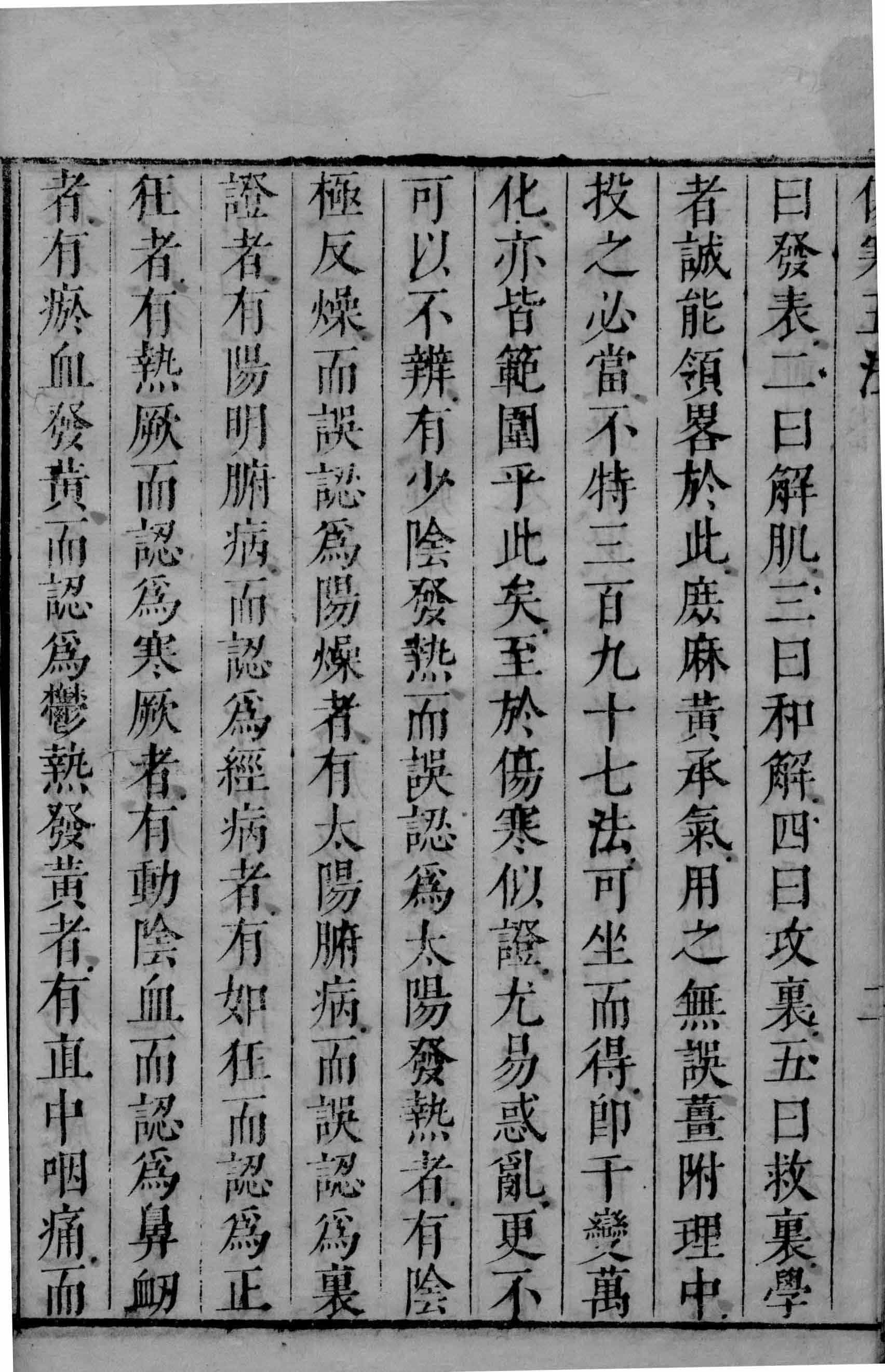伤寒五法 目录:五法总论,脉法,察证总论,察鼻说,察色说,察耳说,察唇说,察舌说,察目说,察腹说,察胸说,察小腹说,五法大旨等。