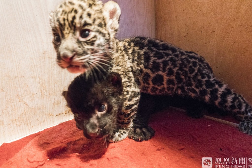4月22日报道,4月21日,杭州野生动物世界出生不久的美洲豹龙凤胎在温室里嬉戏打闹。据了解,妹妹是一只地地道道的美洲豹,而哥哥是一只罕见的基因变异小黑豹,兄妹俩除了毛色不同以外,几乎长得一模一样。