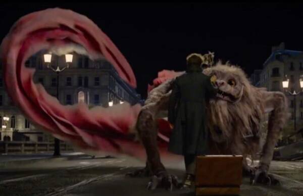 最后,男主纽特斯卡曼德变出一根逗猫棒,才让它平静下来,进而收入箱中。
