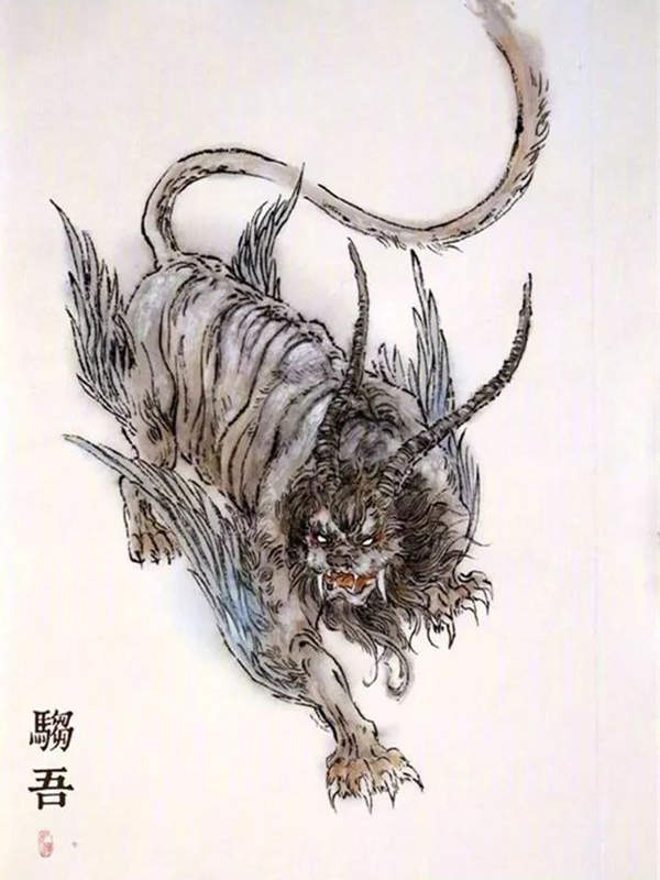 而在中国的历史上,驺吾最早出现于《山海经海内北经》中:林氏国,有珍兽,大若虎,五采毕具,尾长于身,名曰驺吾,乘之日行千里。