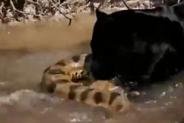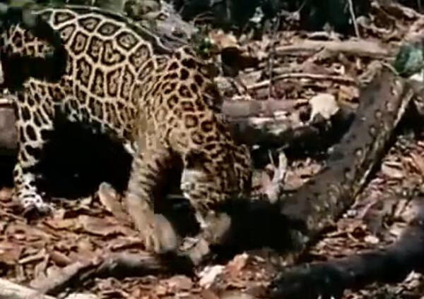 森蚺试图用身体缠住美洲虎