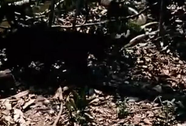 森蚺被拖到了陆地上