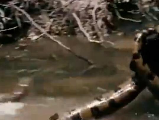 森蚺逃到了水里,试图溜走。