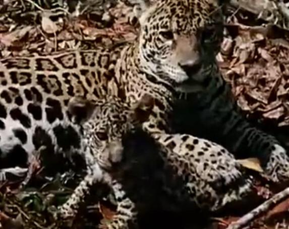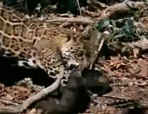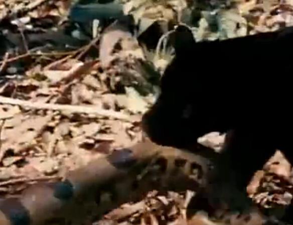 很不幸,森蚺最后被战败,一动不动。成了美洲虎的美食