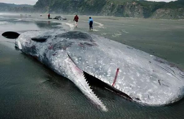 抹香鲸是齿鲸中体型最庞大的一个物种,头极大,前端钝,所以又称为巨头鲸,也名真甲鲸,成年抹香鲸 体长18~25米,体重20~25吨。它主要栖息于南北纬70之间的海域中。由于它们身体粗短,行动缓慢笨拙,易于捕杀,因此现存量由原来的85万头下降到43万头。
