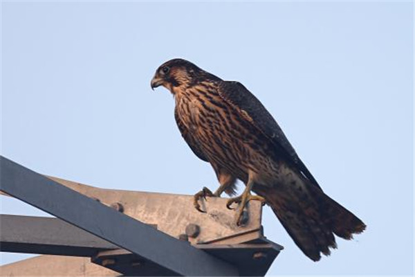 游隼一种较大的鸟纲隼科类动物,属于今鸟亚纲的一种鸟禽。种族较大分布在世界各地的鸟类,飞行速度是鸟类中运动最快的一种,同时也属于一种猛禽凌驾于其他鸟类之上的鸟种。白天行动晚上分布于一些山地、丘陵和沼泽地区休息,属于陆栖鸟类动物。