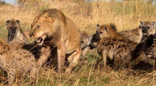 所以你看连雌狮都不敢轻易跟雄狮发生冲突,小小的鬣狗群哪敢这么明目张胆的跟雄狮斗?恐怕是有贼心没贼胆,但它们也不是软柿子,在雄狮那不敢撒得野,在母狮子这儿要好好的放肆一把,所以经常出现母狮子的猎物被鬣狗抢夺。从这一点上就足以看出。鬣狗是不畏惧母狮子。但是想一想,人类有女汉子,狮子家族也会有,说不定狮子家族的女汉子比雄狮还要强。这种时候鬣狗也是不敢轻举妄动的。