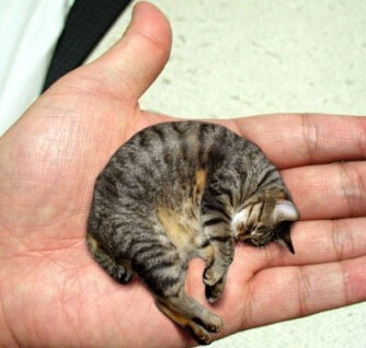 世界上最小的猫,实属罕见,已列入吉尼斯世界纪录。