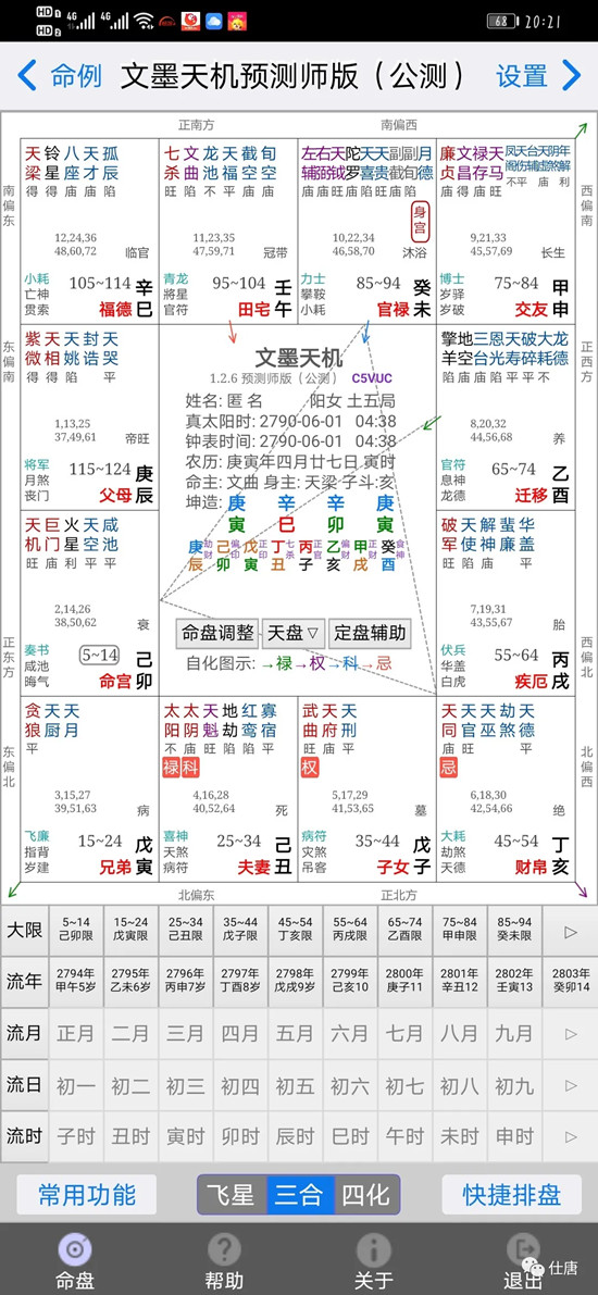 紫微斗数最常用的一种排盘方式,使用的是求问者问出问题的那个时间