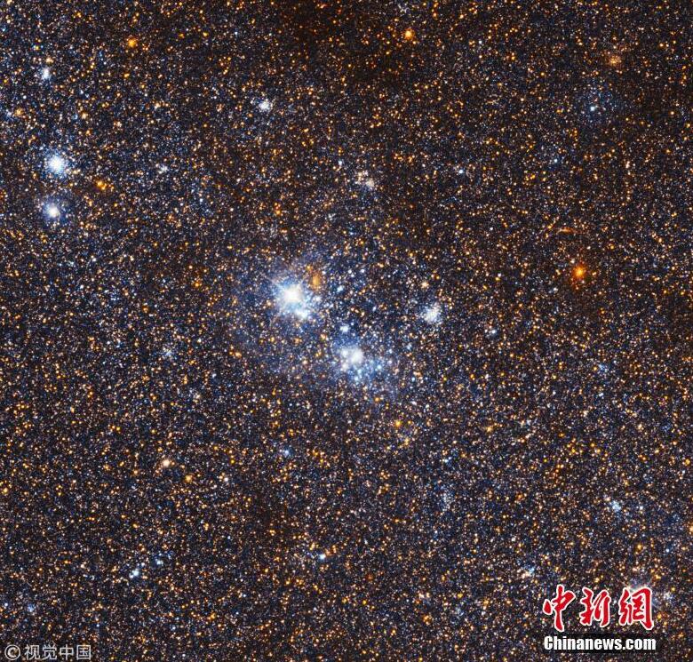 哈勃望远镜的生动视图将54幅图像合并为一幅图像,清晰显示了银河系的中心部分和一些旋臂。