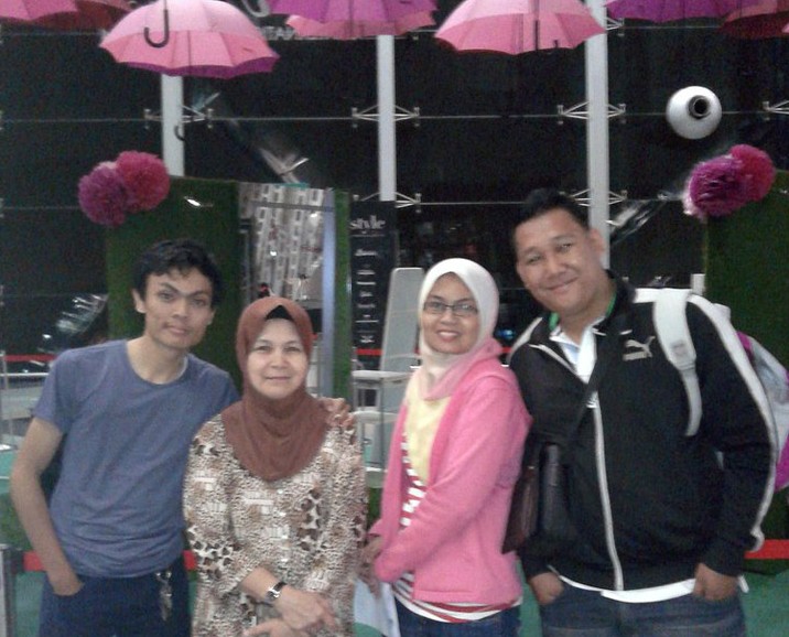 当地时间2014年3月7日,马来西亚吉隆坡, Norliakmar Hamid(右二)和丈夫Razahan Zamani(右)在乘机前与家人合影。