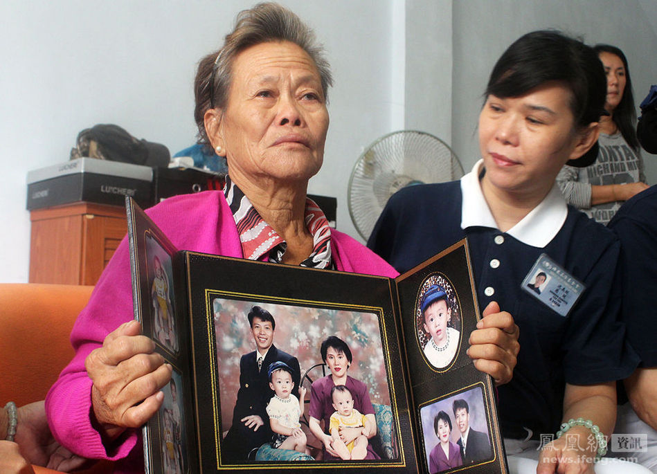 3月10日,一位母亲手持一张自己儿子及其妻儿的合照。儿子和儿媳均在MH370航班