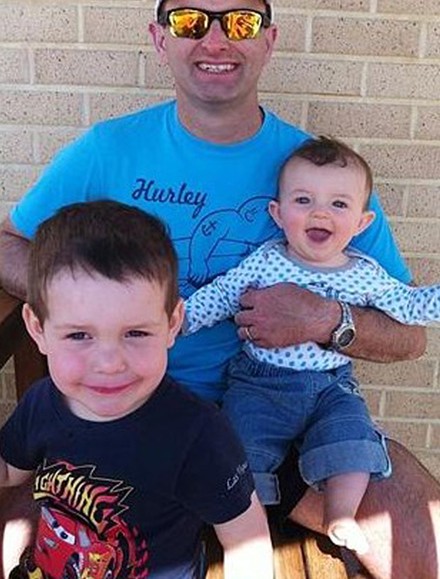 新西兰乘客商人保罗和两个儿子的照片,大儿子为3岁的林肯,小儿子为10个月大的杰克