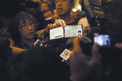 一位女士向媒体展示她失踪朋友的驾照,她朋友和母亲都在飞机上,希望媒体公布她的中文名,让其他家属知道