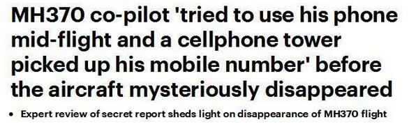 据《每日邮报》3月22日报道,马航MH370航班副驾驶员可能在飞机神秘失踪前曾试图在飞行途中使用手机。