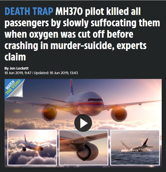 随后,英国《太阳报》更是直击要点:马航MH370的机长故意杀害了机上的238人,是他把飞机飙升至4万英尺高空,让乘客们在缺氧的状态下窒息而死。