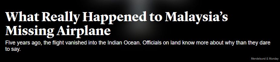 最近知名杂志《大西洋》(The Atlantic)的一篇调查报告却像丢出一个重磅炸弹:马航MH370的失踪系人为。