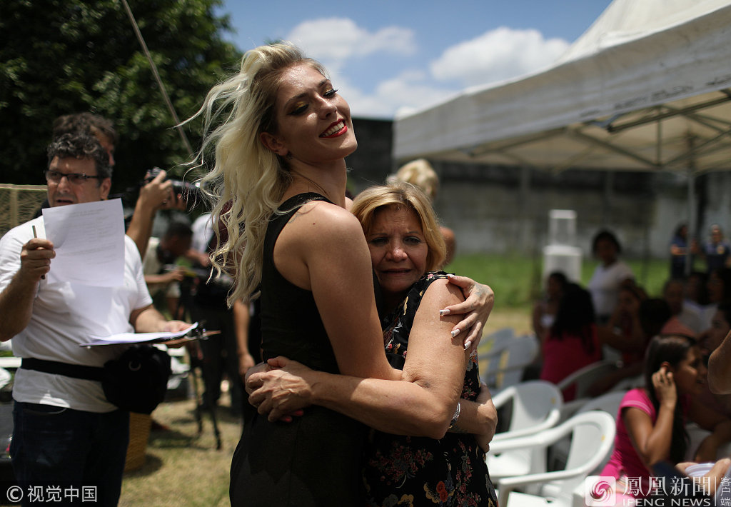 选美比赛中,一名囚犯与她的妈妈拥抱。