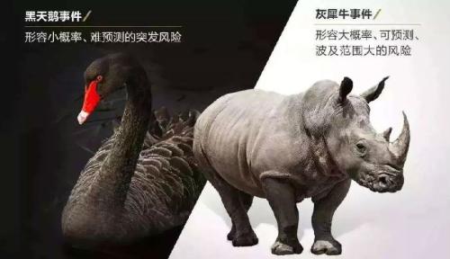 黑天鹅灰犀牛事件是什么意思?黑天鹅、灰犀牛其实是相互不足的概念,黑天鹅是指不可预测的小概率高风险事件,而灰犀牛则是指可预测的大概率大影响的潜在危机。在各个领域都存在黑天鹅和灰犀牛事件,而且两者的影响都会非常巨大,只不过黑天鹅事件无法阻止,而灰犀牛事件是可以控制的。