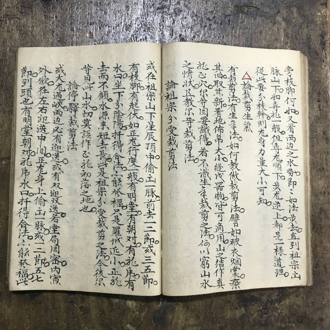 又或一条大路在田坂中走,坂中必有港水,或溪或涧,罗城完固,此乃源流长也,如无溪涧港,只是田龙,源流短也,且莫看山,先看横栏水向那边湾,若向东湾,则正龙在东边,向西湾则正龙在西边,此主客之分,心中便有主,若反弓那边,纵然结地,亦小裁剪而已,不能享此堂局,或向上流取穴迎潮方可,若对反弓,则不是地了,今后尔等若见一砂顺水走,二砂顺水走,心中摹记,看那枝迎水上来,与顺水砂相会,若先见一砂逆水上,二砂逆水上,心中摹记,看那一枝顺水下来,与逆水砂相会,中间必有正龙落头,此即为上砂下来,下砂上去,中有一穴随形向是也,又要大坂中宽,两头狭窄宽处,正当水湾之中,山交之际,上有天关水,要长而不浩荡,下有地轴水,合处又要山势交牙,即谓水口交牙内局宽也,又或正龙两边,山狭小港,必有几条水,来会面前横栏大会水,若上手有一条港随龙出来,下手有一条港亦随龙出来,中间或有三五枝龙,或乾龙水,或田龙水,势虽多,皆是正龙手脚布满也,有港考水源出自祖山,随龙下来,中间无港水考,水源发自本龙手脚下来,若一边有港,一边无港,必非正龙,若两港夹身刺脇,则龙无手脚,必非真龙,不必着眼,此皆论横局也,又有一等大坂当中一条港水,委曲如生蛇走下之玄曲,两边主客不分,今后尔等见此水法,不可亦前诀视之,当扣两旁必无真龙落头,若是落头水,必在口上向潮水,方為真结,又要天门开阔,即谓九曲入明堂是也,若抬头不见外阳,乃水口之内幽阴之所,父要秀门,不劳着眼,此剿龙望势之要诀,晓得此诀,任尔横行天下矣。