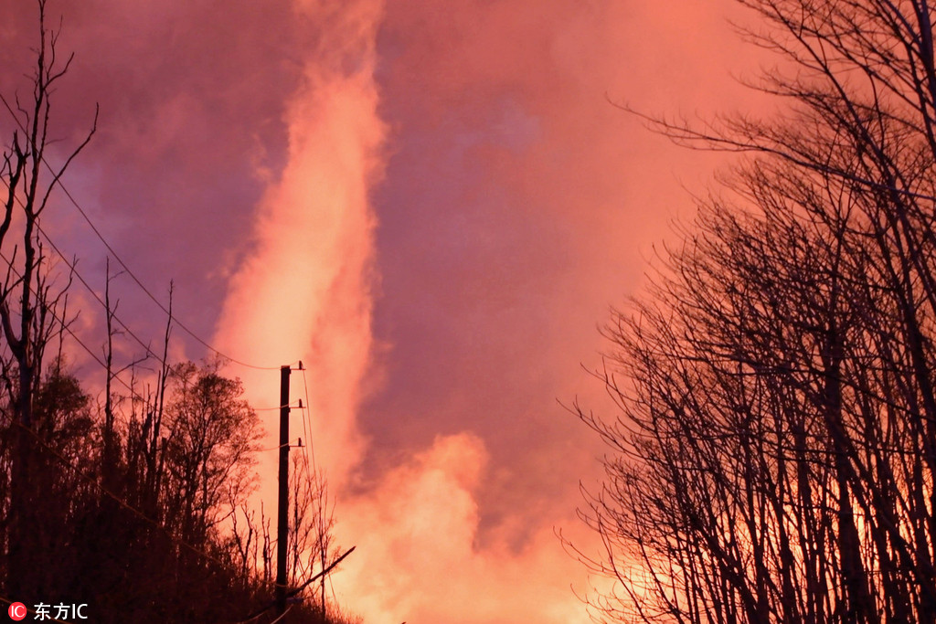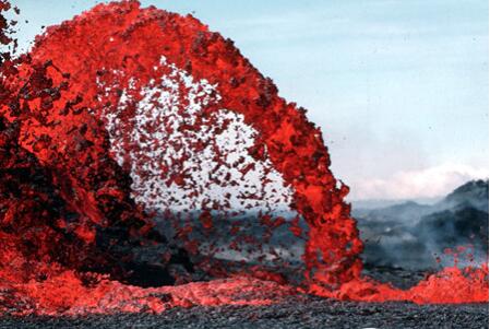 当时,一道裂缝喷射出40英尺(约12米)高的熔岩柱。